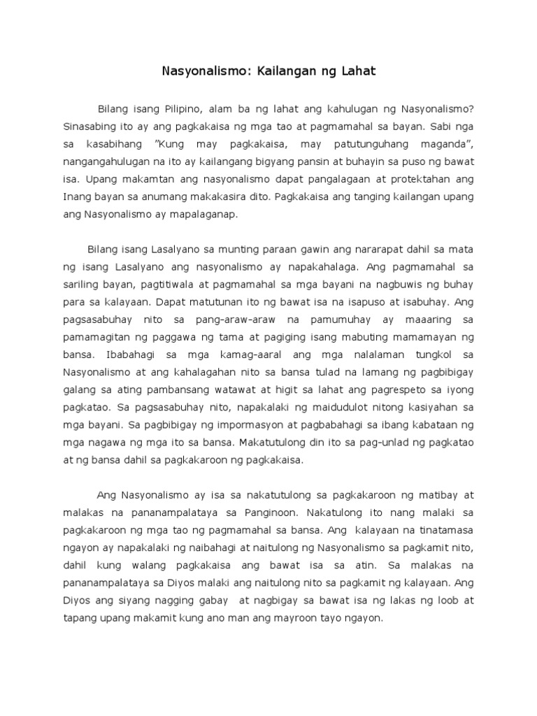 Pero ang lahat ng mga gawaing ito ay naka-angat lahat sa pagpapakita ng nasyonalismo at pagmamahal sa Pilipinas. Leave a Reply Cancel reply.